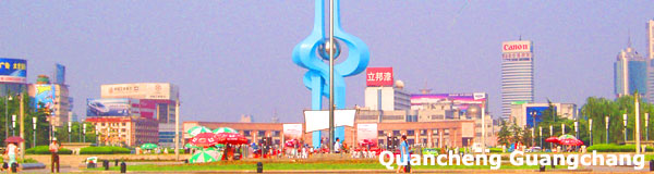 Located in the arms of the mountains, springs, rivers and city, Quancheng Square is the central square of Ji Nan. Watching the old city scenary in the north, Baotu Quan in the west, Qianfo Mountain in the south and Jiefang Ge in the east, Quancheng Square is a leisure resort for the citizens. The square is 780 meters long from east to west and 230 meters wide running south to north. It covers an area of 154,000 square meters. From the west to east, the square is composed by Baotu Quan Square, Jinan Celebrities Forest, Quanbiao Square, Sunken Plaza, Yitian Yuan, Children's Paradise, Binhe Square, Lotus Music Fountain, Four Seasons Garden, Culture Promenade, Science and culture center, and Ginza shopping mall.