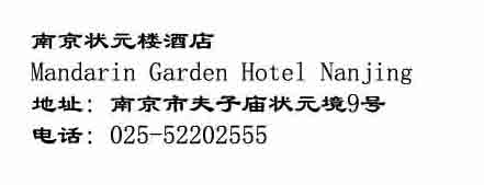 Mandarin Garden Hotel Nanjing Mandarin Garden Hotel Nanjing is located to the northern part of the well-known Confucius Temple, Qinhuai Scenic District. Address: 9 Zhuang Yuan Jing,Confucius Temple, Nanjing Telephone: 86-25-52202555 Star rating: Surrounding attractions: Confucius Temple More pictures: chinese address |