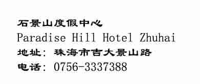 Address: No. 193 Shi Ching Shan Road, Zhuhai Telephone: 86-756-3337388 Star rating: